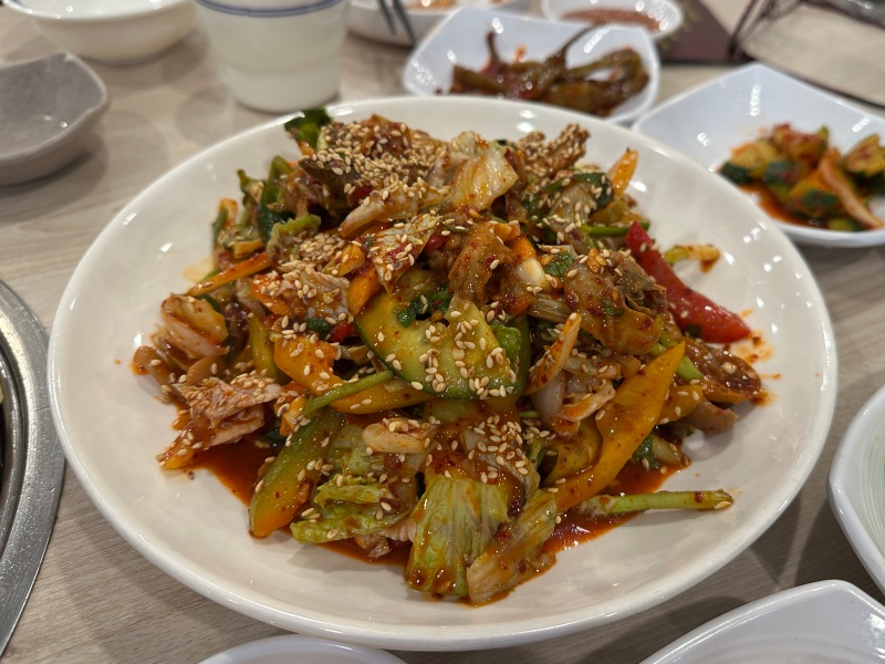 돼지고기 삼겹살 3인분을 주문했는데 솔찍히 삼겹살은 살짝 질기고 맛도 국내에서 먹는 삼겹살보다 고소한 맛이 좀 덜한 것 같았습니다.